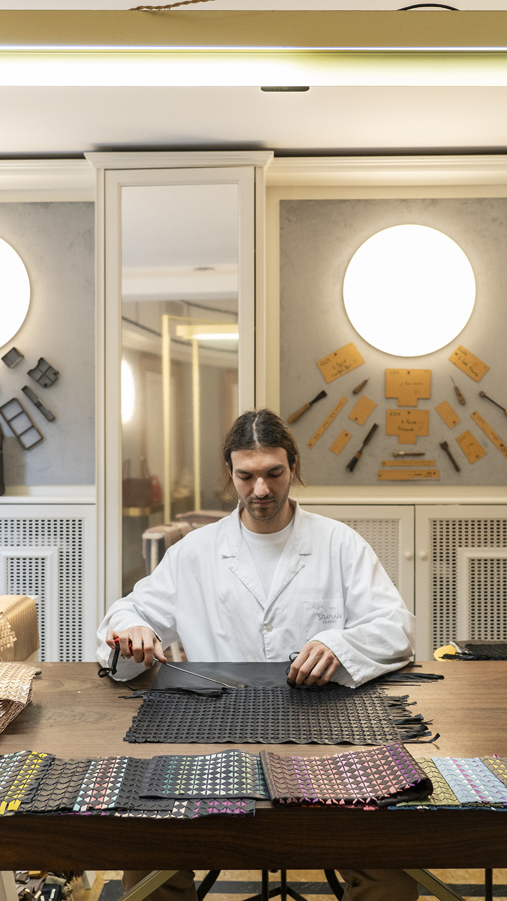 The garden in front of the entrance to Villa Mozart will welcome visitors in the Atelier with “Intrecci Italiani”, a special installation of works by Bonacina, leader in the processing of rattan since 1889. During the week, there will be a special Atelier featuring artisans from Serapian and Bonacina at work in the creation of Bespoke design pieces in collaboration.