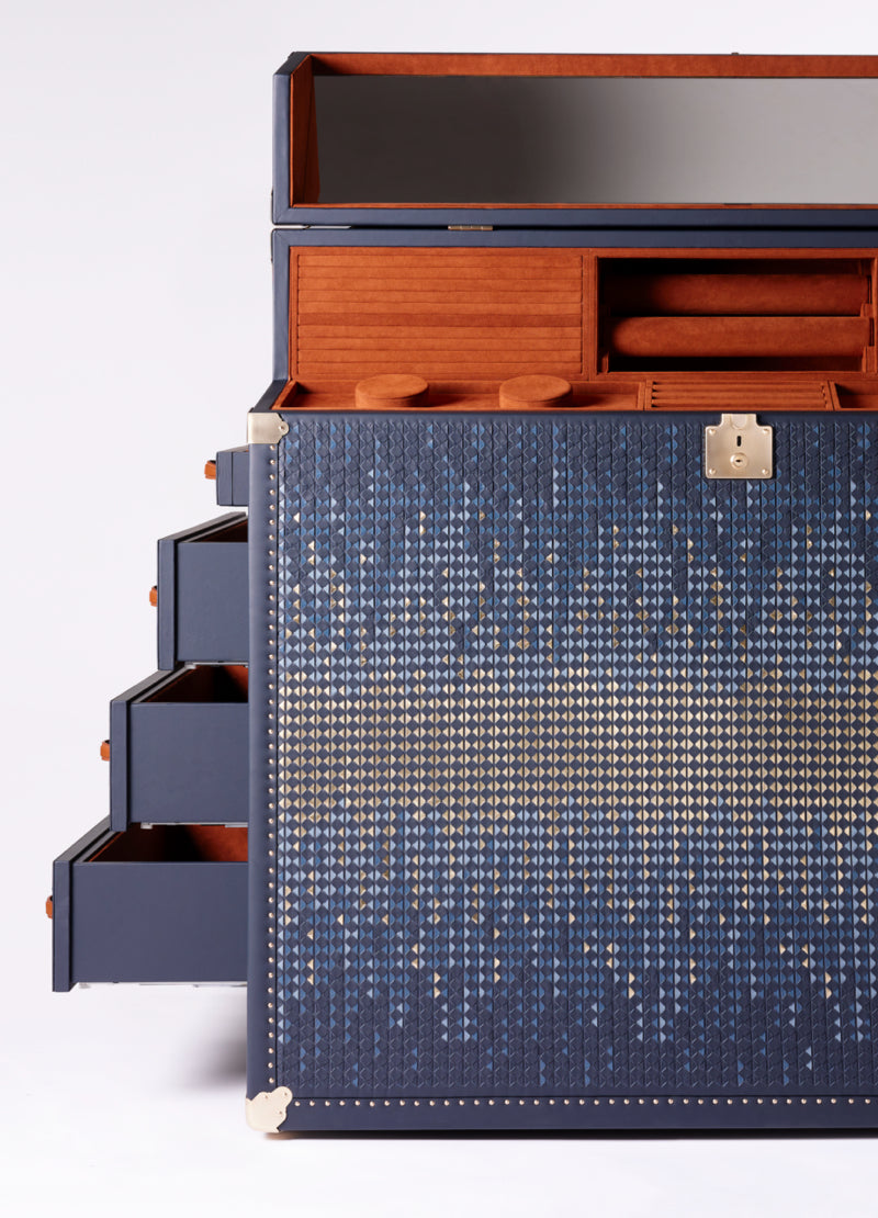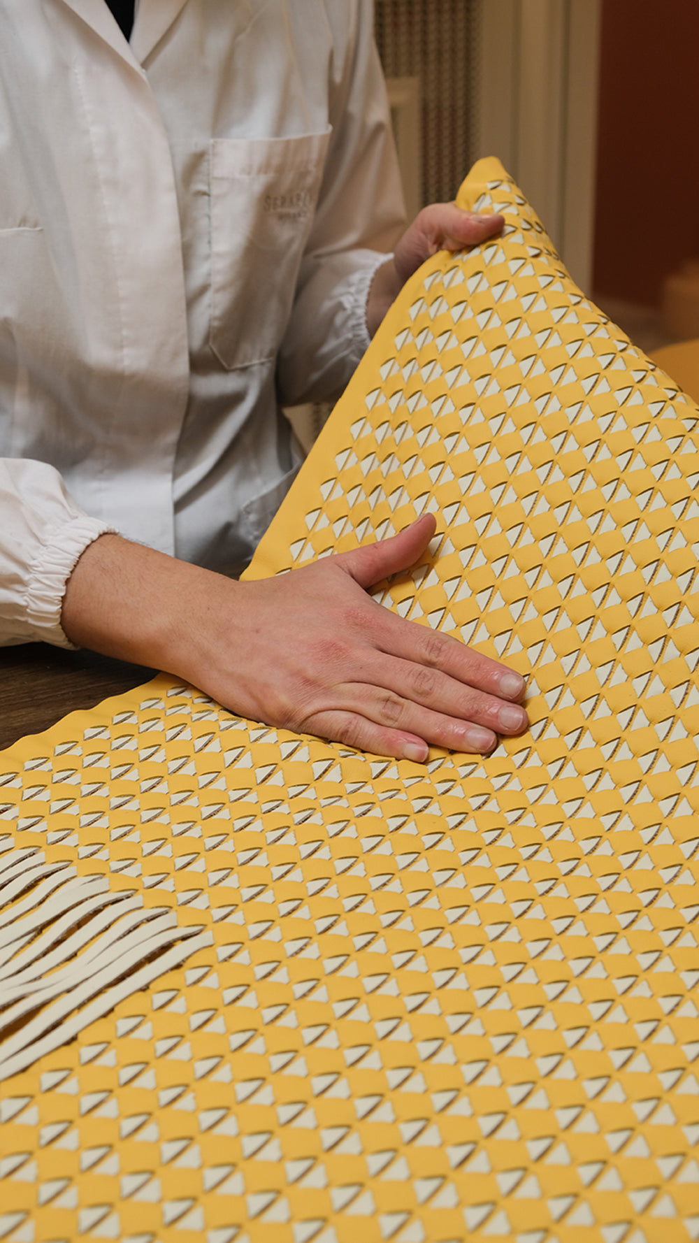 On the ground floor of the Villa takes place the eighth edition of Doppia Firma, a project of Fondazione Cologni and Living, which showcases never-before-seen works born from 15 creative partnerships between great international designers and Milanese Master of Art of excellence. Serapian together with the Milanese designer Cristina Celestino will present “Pli”, a Bespoke modular sofa in Mosaico woven leather. The seat proposes a new way of articulating space, reinventing places through the identification of a rediscovered comfort and a declared geometric composition.