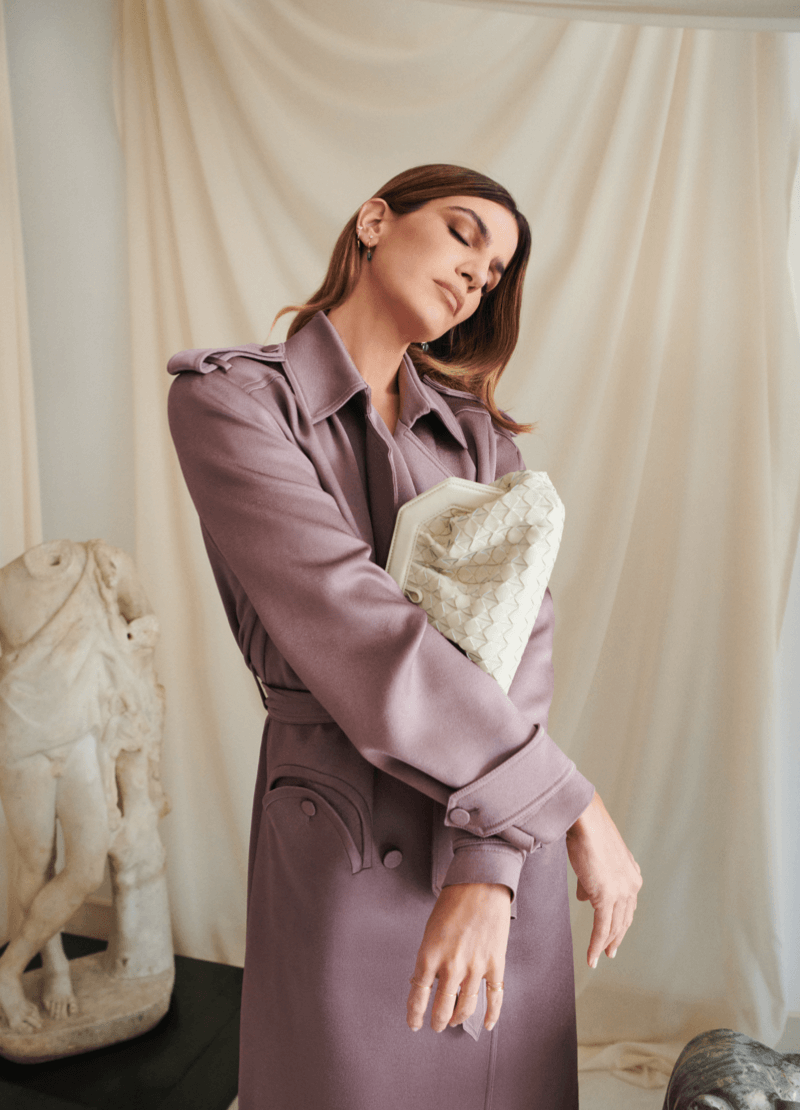Starring alongside her in the photo series are handbags, clutches and tote Bags from Serapian’s Secret collection, the most iconic of the Maison’s collections, handcrafted with the signature Mosaico weaving technique created by Stefano Serapian in 1947. A refined palette of black and white showcases strips of precious lamb nappa that have been delicately handwoven by artisans to create a hypnotic effect. The collection exudes artisanal sophistication, and also reflects The Maison’s international acclaim as a patron of historic art and design.