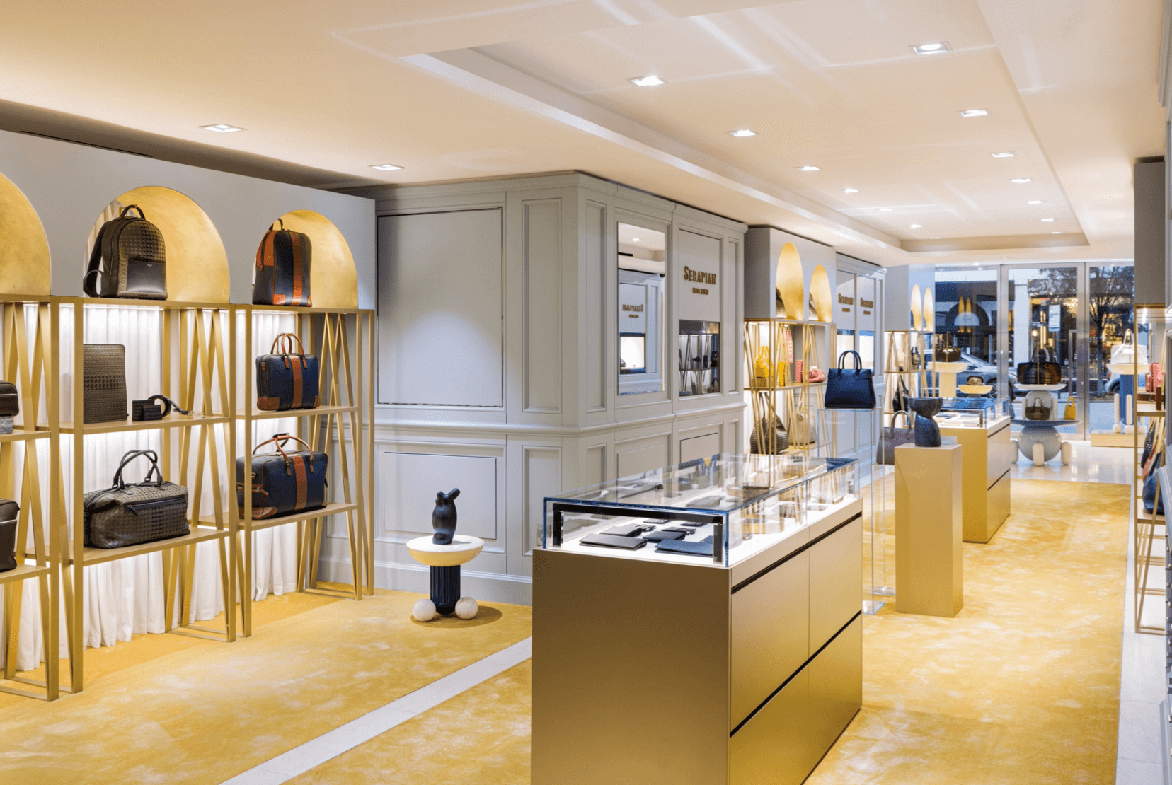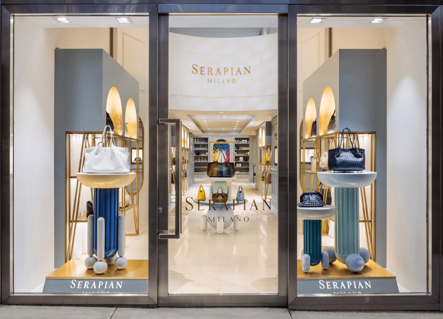 Serapian is pleased to announce the opening of its Pop up Boutique in New York, located at 785 Madison Avenue. The 130-square-meter space is punctuated by golden arches and opulent marble details, the latter a nod to Villa Mozart, Serapian’s headquarters in Milan.