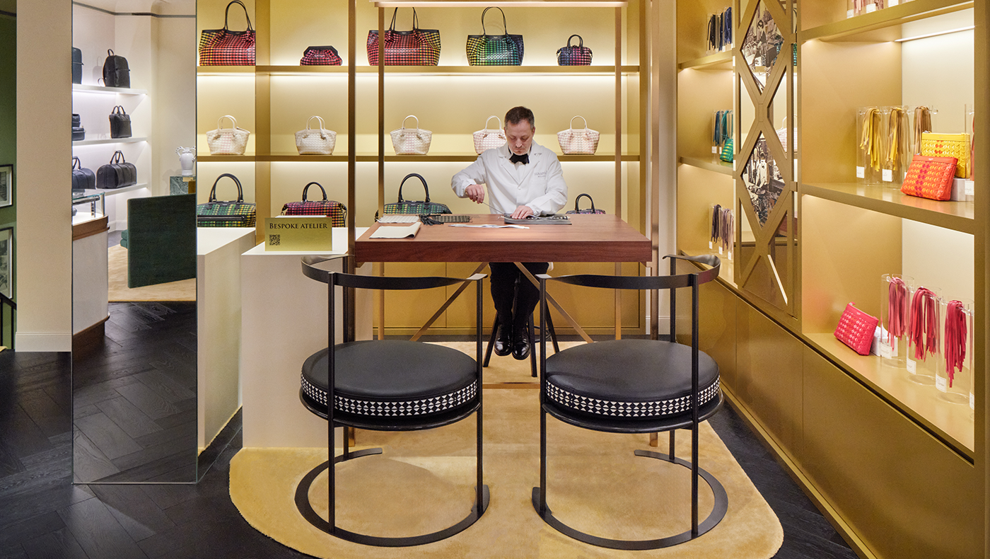 On this floor, a bespoke atelier led by a skilled craftsperson will offer guests the opportunity to create a made-to-measure Serapian piece. Clients will have the option of crafting a bespoke bag from more than 50 colours of nappa, which can be combined through the brand’s iconic Mosaico leather concept.
