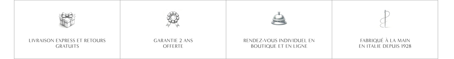 Si vous avez besoin d'aide pour améliorer votre expérience de shopping, n'hésitez pas à nous contacter par e-mail à l'adresse customercare@onlineboutique.serapian.com ou par téléphone au +39 02 3859 5666.