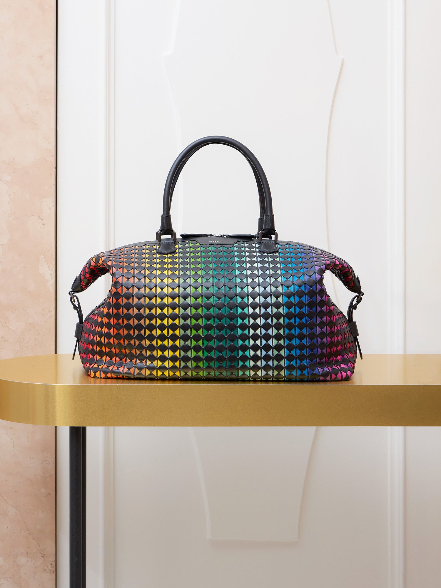Ispirata alle star dei film anni ‘50, questa creazione dalle dimensioni monumentali presenta degli interni lavorati in Mosaico di Serapian, ed è dotata di cassetti nascosti e uno specchio retroilluminato a forma di diamante, due dettagli che rendono omaggio all’iconica Secret Bag.