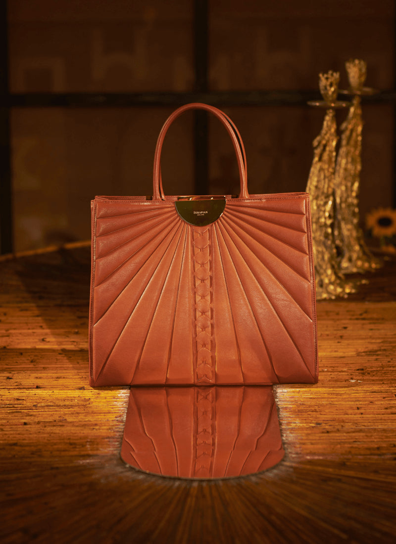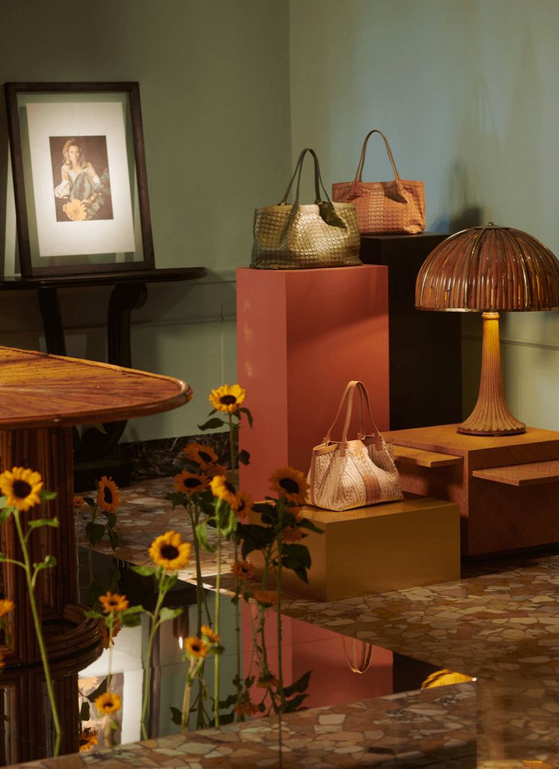 才能あふれるクレスピに敬意を表して、セラピアンでは、1973/75年に発表された彼女のアイコニックな「Rising Sun」コレクションにインスピレーションを受け、リミテッドエディションのカプセルを発表します。メゾンが誇る巧みな職人技術とメゾンオリジナルのMosaico技法が、真ちゅうのエレメントを際立たせる仕上がりとなっています。